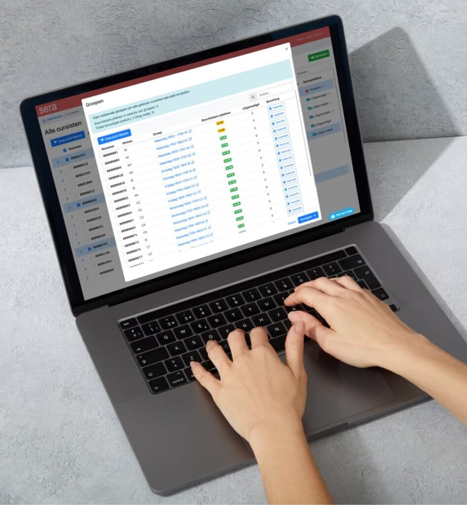Met de Oproepmodule van SERA Dataduiker worden wachtlijsten verleden tijd. Vul lesgroepen automatisch, snel en foutloos – zonder eindeloze belrondes of handmatig puzzelen. Cursisten kiezen zelf hun voorkeursdagen en tijden, terwijl coördinatoren altijd grip houden op capaciteit en planning. Het resultaat: optimale bezetting, minder werkdruk en tevreden cursisten.